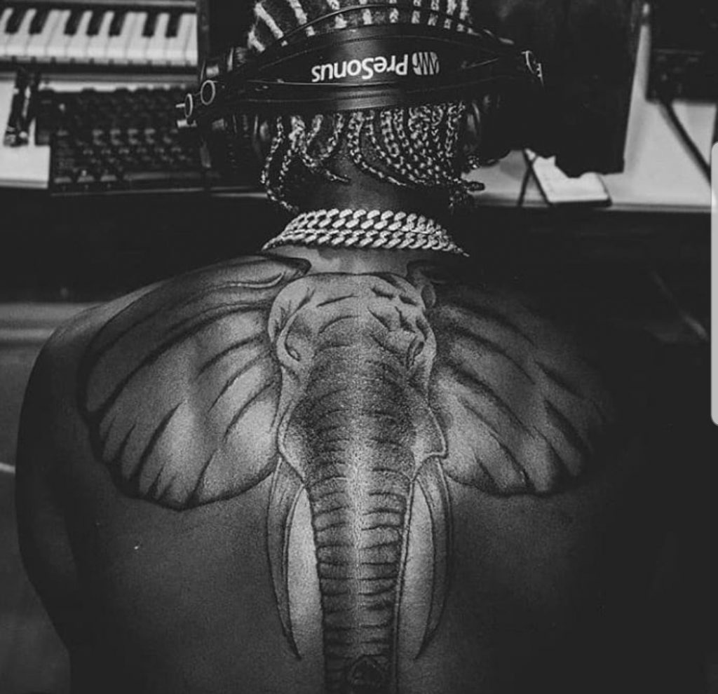 kondeboy ameamua kuwaonyesha mashabiki zake mchoro mpya wa #tatoo yenye picha ya mnyama tembo kwenye mgongo wake.