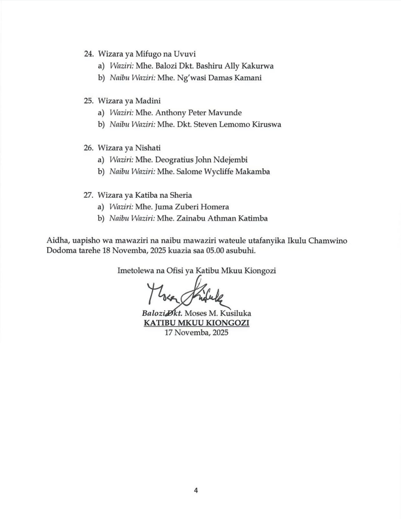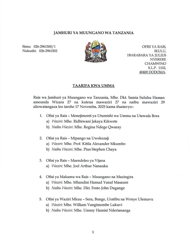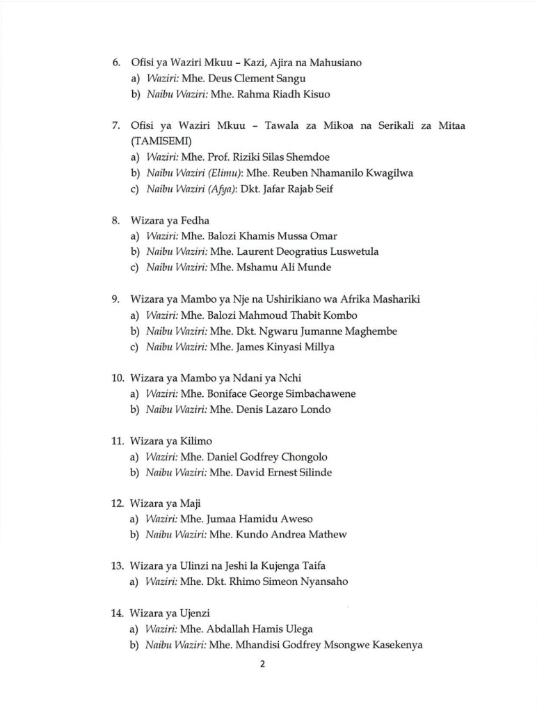 RAIS SAMIA ATEUWA BARAZA JIPYA LA MAWAZIRI.In Kitaifa 0 Share Share Tweet Previous Post WATANZANIA WATAKIWA KUIUNGA MKONO JKT QUEENS contributor contributor Join Our Newsletter! Get updates, news etc from us. Its simple just put in your email address. Leave this field empty if you're human: You may also read!SERIKALI YATOA BIL 424.6 UTEKELEZAJI MIRADI YA TANRODS RUKWA-ENG MWANGA October 20, 2025 10 0 CommentsBy: contributor contributor KATIKA kipindi cha miaka minne ya Serikali ya awamu ya sita inayoongozwa na Rais wa Jamhuri ya Muungano waRead More...Kasri la R. Kelly “Chocolate Factory” lauzwa Chicago Baada ya Historia ya Utata October 15, 2025 16 0 CommentsBy: contributor contributor Nyumba kubwa iliyoko katika suburbs za Chicago, maarufu kama “Chocolate Factory” ya R. Kelly kutokana na albamu aliyorekodi hapo,Read More...UJENZI WA DARAJA LA 6 KWA UREFU TANZANIA LA PANGANI WAFIKIA ASILIMIA 74.3 October 15, 2025 14 0 CommentsBy: contributor contributor Ujenzi wa Daraja la Pangani lenye urefu wa mita 525 na Barabara unganishi na mchepuko zenye urefu wa KilomitaRead More... Leave a reply: Cancel ReplyYour email address will not be published. Save my name, email, and website in this browser for the next time I comment.